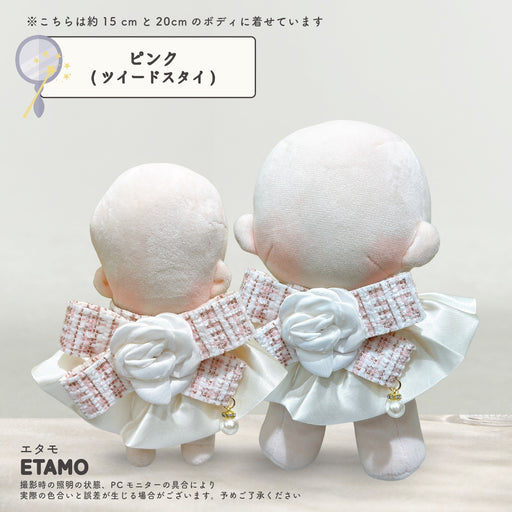 Etamo推しのぬいをもっと可愛く! リボンをキュッと結ぶだけで簡単おめかし♪ ツイード生地とたっぷりのフリルがリッチなスタイです。 ゆらゆら揺れる小さなパールがアクセントに♪ ・約15cm~20cmのボディにおすすめのサイズです。 大きさはワンサイズの為、ぬいのボディ毎に着丈がそれぞれ異なり...