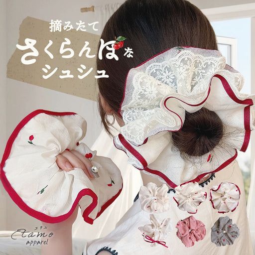 摘みたてのさくらんぼをシュシュに。 馴染みの良いさらりとした生地に小さなさくらんぼの刺繍を施しました。   《 1.ふんわりエアリー 》 重たさを感じさせない軽やかな仕上がり。 一つ結びやお団子ヘアにプラスするだけでスタイリングの完成度が上がります。   《 2.ロングヘアを美しく飾る、計算さ...