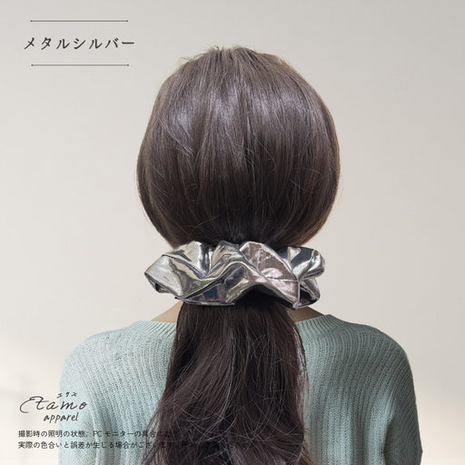Etamo【いつものヘアアレンジに華やかさをプラス】 《 1.珍しい生地感 》 光沢たっぷり、艶のある生地が個性的なシュシュ。 シンプルな1つ結びでも洗練された華やかさを演出します。 《 2.ミディアムからロングヘアまで、美しく仕上がるサイズ感 》 大き過ぎず 小さ過ぎない、使いやすいサイズ...