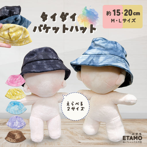 Etamo推しぬいをもっと可愛く! エタモのぬい服コレクションから 約12~15cm・20cmのぬいちゃん向けのバケットハットが登場です! 【タイダイ染めがお洒落なバケツハット】 着回し力抜群のシンプルな帽子。 カジュアルなスタイリングのアクセントにぜひ♪ コーディネートがもっと楽しくなるこ...