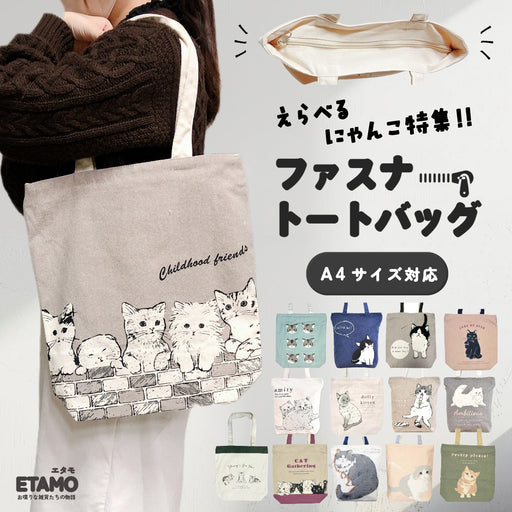 詳細を全部見る猫 トートバッグ 横型 A4 ファスナー付き