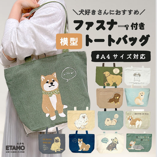 犬 ファスナー付き トートバッグ A4対応 縦型 しば犬 ミニチュアシュナウザー ゴールデンレトリバー ミニチュアダックスフンド シーズー ビションフリーゼ ヨークシャーテリア コーギー ポメラニアン トイプードル チワワ パグ フレンチブルドッグ コーイケルホンディエ 秋田犬
