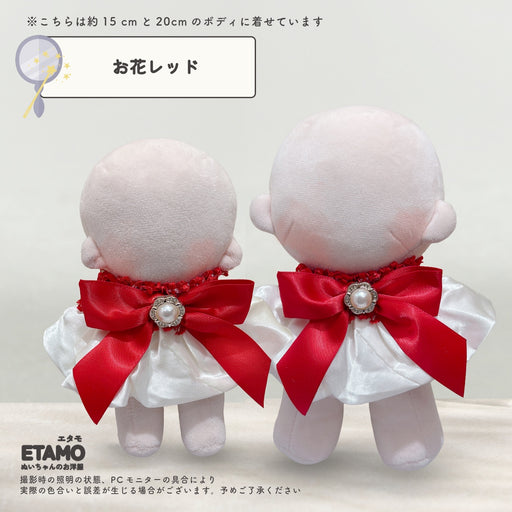 Etamo推しのぬいをもっと可愛く! リボンをキュッと結ぶだけで簡単おめかし♪ たっぷりのフリルがリッチなスタイです。 ・約15cm~20cmのボディにおすすめのサイズです。 大きさはワンサイズの為、ぬいのボディ毎に着丈がそれぞれ異なります。 各メーカーのぬいボディ,ぬい服共に 綿の詰まり...