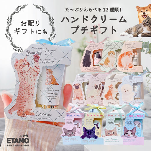 Etamo犬と猫のイラストが可愛らしい ミニミニサイズの香り付きハンドクリームギフトです。 箔押し&リボン付きのギフトパッケージの中には ポーチやバッグの内ポケットなどに忍ばせやすい 小さなハンドクリームが入っています。 お誕生日やご結婚、引っ越し祝いや退職祝いはもちろん、 バレンタ...
